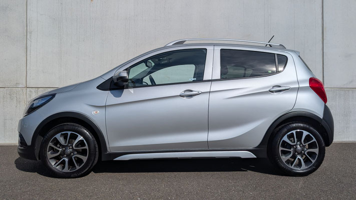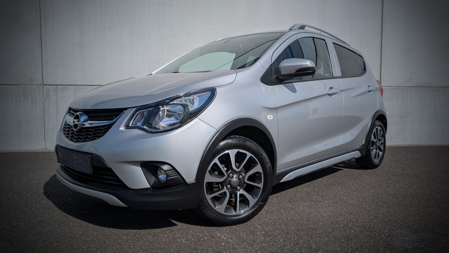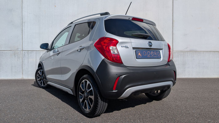 In dit specifieke geval gaat het niet zomaar om een Opel Karl, maar om een Opel Karl Rocks. Deze Rocks heeft een stoerdere uitstraling, onder andere door de dakrails die er op zitten, in combinatie met de dikke spatbordranden en sideskirts en de dikkere bumpers met beschermplaten. De Rocks staat op 15 inch lichtmetalen, gepolijste velgen. Ook de bekleding is uniek voor de Rocks. Misschien wel het belangrijkste verschil, is het aangepaste onderstel van de Rocks. De Rocks heeft meer bodemspeling, wat inhoudt dat u een wat hogere zitpositie heeft, en het in- en uitstappen net even wat makkelijker gaat.